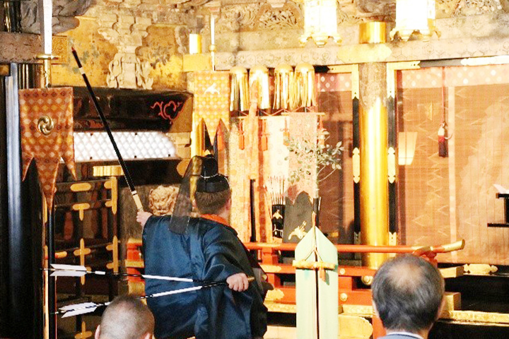 | 宮司 祝詞奏上 | 鳴弦式の様子 |