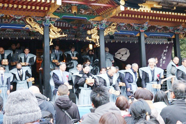 2月3日午後3時より御社殿では節分祭撒豆式が斎行されました。節分祭撒豆式は61名の方にご参列頂きました。参列者は裃を着用し、本年の無病息災を祈りつつ、境内にご参集の方々へのお福分けのお手伝いをしてくださいます。