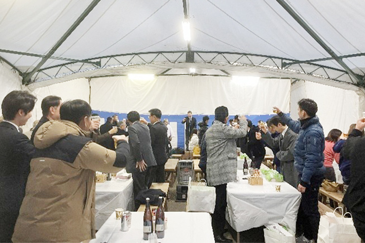 各自で感染症対策を取ったうえで、直会を行っております