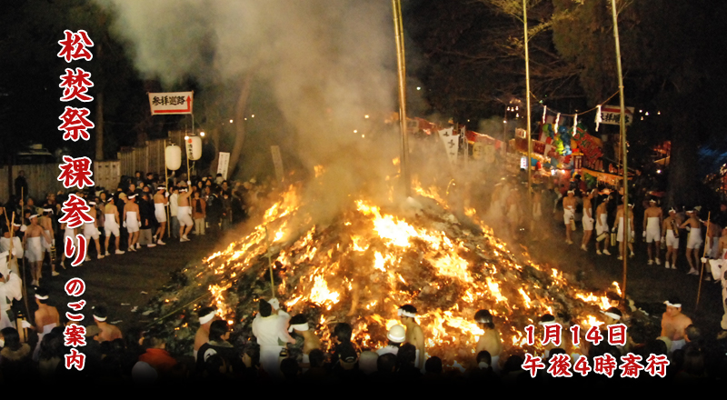 皆様には、八幡大神様の御神徳を享けられ平成二十八年を安寧にお過ごし頂けますよう、松焚祭裸参りの参加をご案内申し上げます。