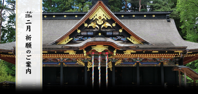 祈願受付時間午前9時~午後4時(但し、祭典時間の前後20分はお待ち頂きます。)