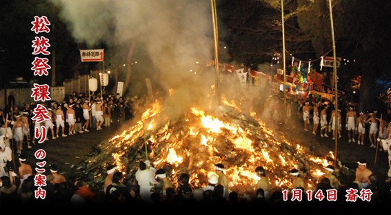 広大無辺なる八幡大神様の御神徳を享けられ、来たる年を安寧にお過ごし頂けますよう松焚祭裸参りのご参加をご案内申し上げます。
