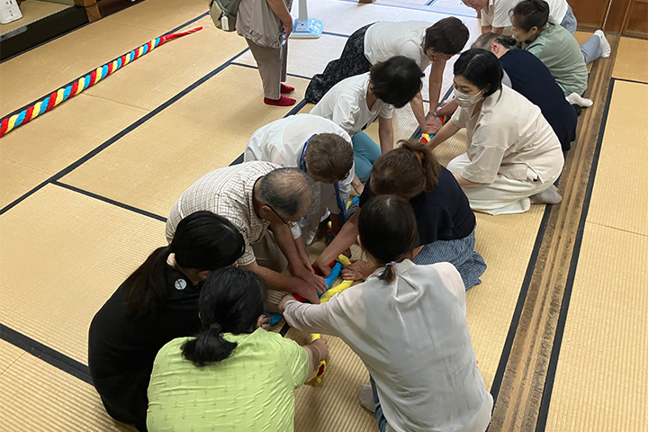 今年は13名の有志の方々にお集まりいただきました。氏子崇敬者の方々が皆様の願いが浄書された布を丁寧に畳み、一つ一つ力を込めて綯い上げてゆく様子は大神様へお力になるものだと感じました。