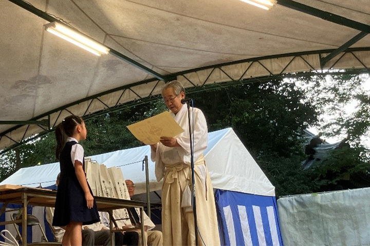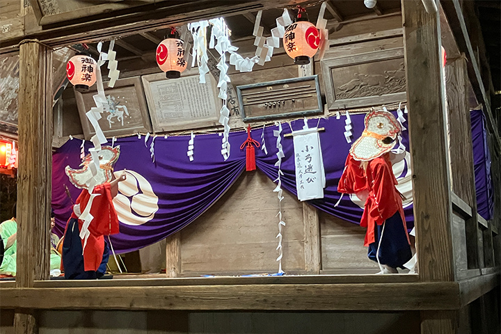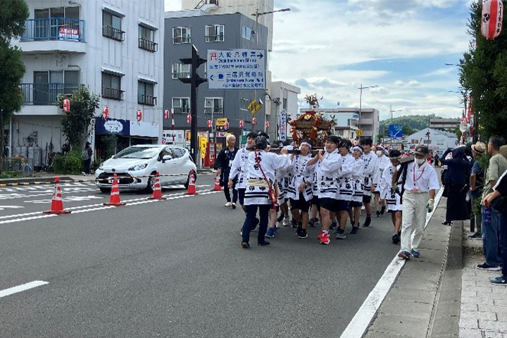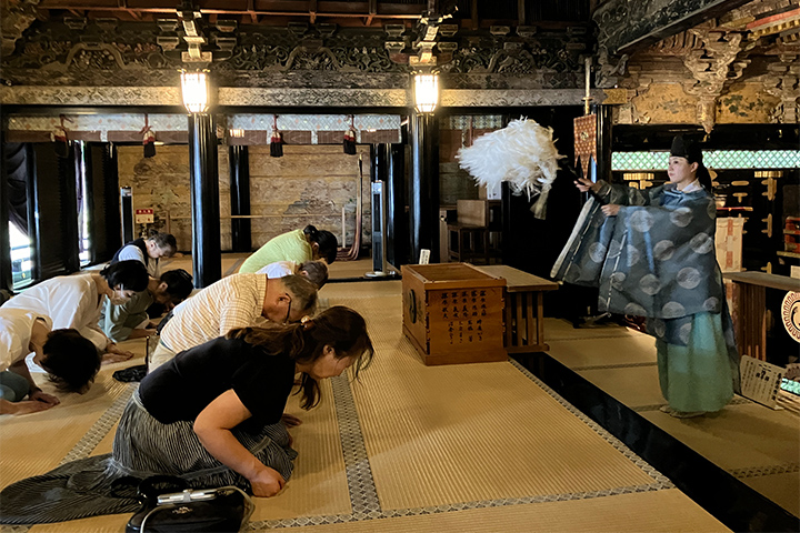 また、9月13日午後3時に斎行された献饌式や同日午後6時30分に奉奏された能神楽奉奏、そして9月15日の例祭の祭典見学の機会、また14日の神幸祭では若神輿の奉舁の機械を設けました。祭典がどのようにして作られていくのかという流れを学ぶこと、参列者や参加者の目線で祭典を見学・体験することもいい経験になったのではないでしょうか。