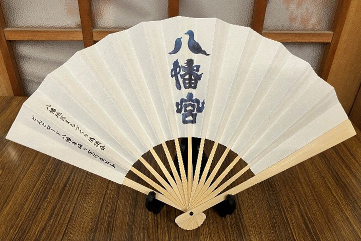 また、本年は20回目の開催を記念して、どんとロード八幡雀踊り用の扇子を調製しました。この扇子は、沿道や境内でご覧になっている方々が、雀踊りに参加するきっかけとして、そして八幡町の地域振興を目的として、調製が決められ準備を進めて参りました。