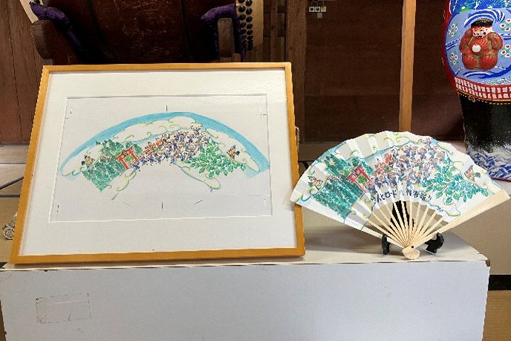 地域の文教団体に扇子を贈呈しました | 原画と扇子は長床に飾ってあります |