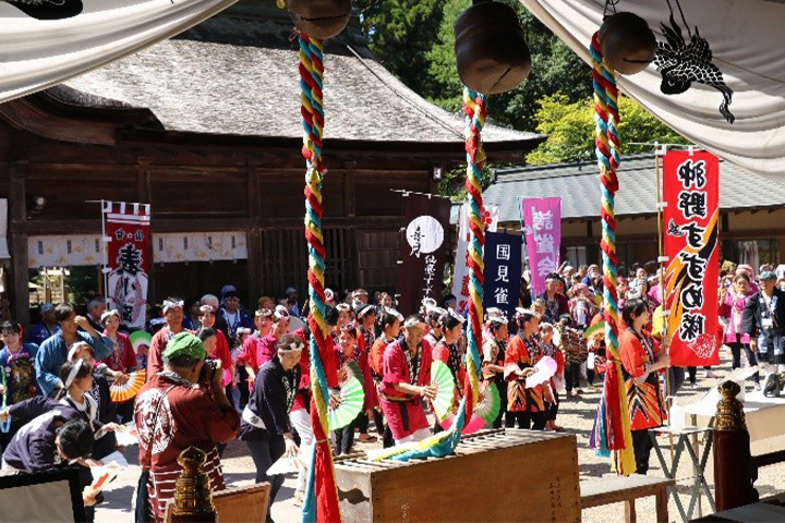 去る令和7年9月7日、例大祭の神振行事の一つである「どんとロード八幡雀踊り」が開催されました。