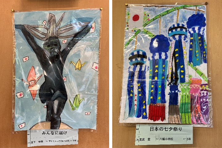 また、本年より新たな試みとして、当宮独自の「国旗のある自由画コンクール」を開催致しました。審査は当宮宮司と、イラストレーターとして活躍されている佐々木ひとみ殿、栗城みちの殿が行い、7点の入賞作品が選出されました。