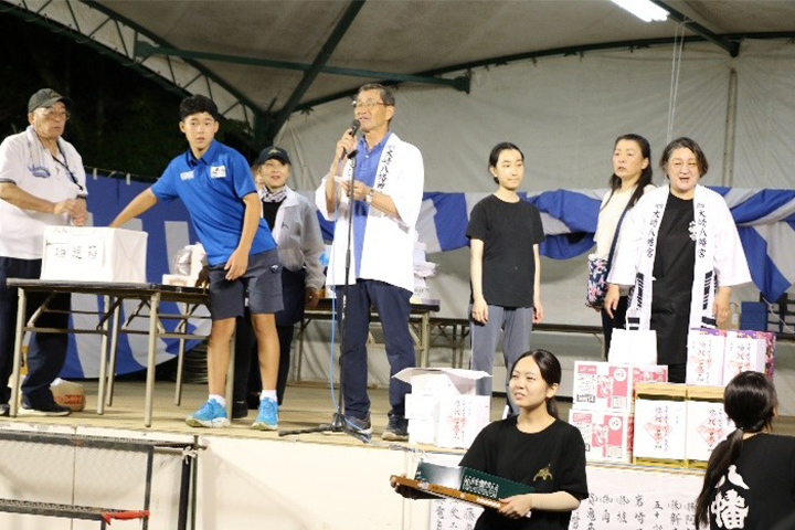 9月14日午後6時30分より、広場特設舞台にて例大祭の締めくくりとなる福物抽選会が行われました。