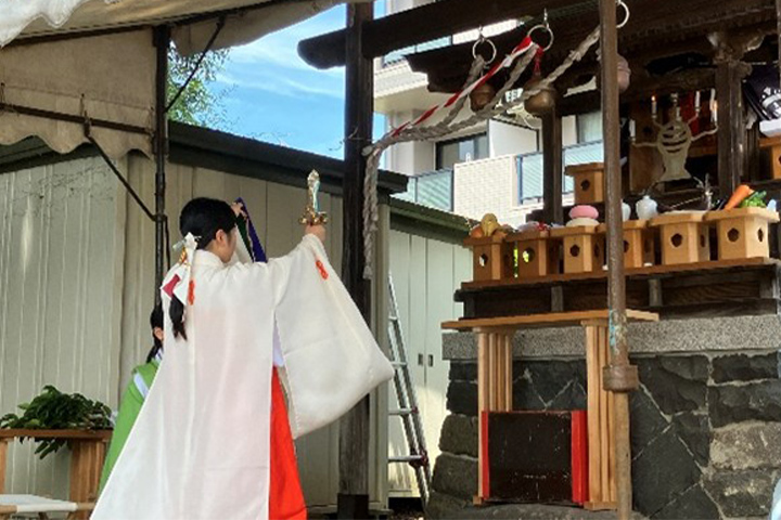 | 夏の祭典は天候との闘いでもあります | 御神楽「浦安の舞」奉奏 |