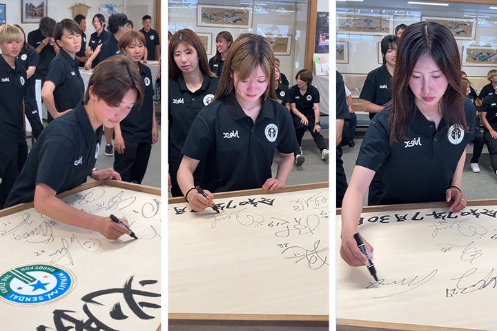 マイナビ仙台レディースは宮城県仙台市をホームタウンとしており、日本の女子サッカーリーグ「WEリーグ」に所属する女子サッカークラブです。トップチーム選手の他にスタッフ含め43名ほどが参列しました。